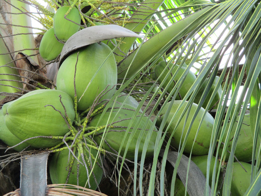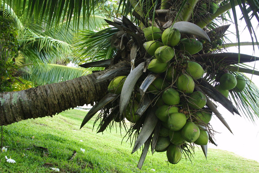 Its refreshing water quenches thirst. Her flesh, rasped and pressed, gives an aromatic milk used for the preparation of the famous « raw fish with coconut milk ».